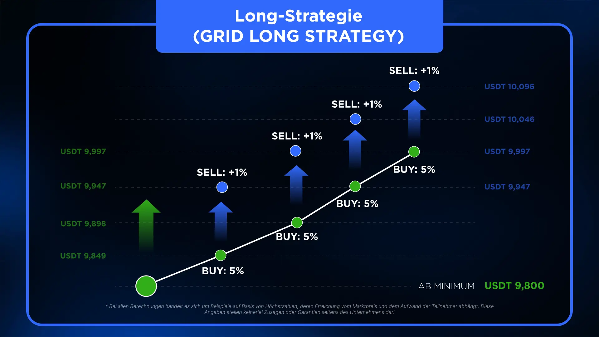 Dieser funktioniert ähnlich wie der Grid Short, ist aber für aufwärtsgerichtete Märkte konzipiert.